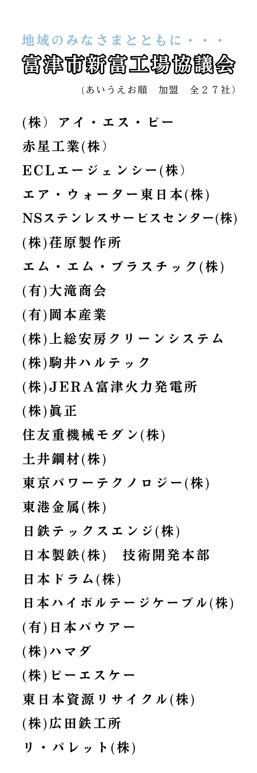 富津市新富工場協議会ケーエルシージャパン株式会社株式会社 ハマダ株式会社 ハヤシ造園土木